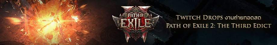 วิธีรับของรางวัลเพียงแค่ผูกบัญชี Path of Exile ของคุณเข้ากับ Twitch (ตามวิธีด้านล่าง) แล้วรับชม GGG Live ผ่านทาง www.twitch.tv/pathofexile หรือแชนแนลใดๆ ที่อยู่ในหมวด Path of Exile 2 เป็นเวลา 45 นาที โดย Twitch Drops จะเปิดการใช้งานตั้งแต่ 3:00 - 12:00 น. (เวลาไทย) ซึ่งตรงกับวันพุธที่ 20 สิงหาคม 2025 เวลา 16:00 น. ถึงวันพฤหัสบดีที่ 21 สิงหาคม 2025 เวลา 1:00 น. ตามเวลาในบัญชีของคุณคุณจะได้รับเอฟเฟคปลิดชีพแรร์ นักบวชตะวันแผดเผา หลังจากที่รับชมแชนแนลใดๆ ที่สตรีม Path of Exile 2 ที่ระบุว่า Drops Enabled รวมกันครบ 45 นาทีในช่วงเวลาของกิจกรรมนี้ ซึ่งแปลว่าทุกคนที่รับชมการสตรีม Path of Exile 2 ใดก็ตามจนครบจำนวนเวลาที่กำหนดจะได้รับของรางวัลนี้ไปอย่างแน่นอน โปรโมชั่นนี้มีให้กับบัญชีทุกระบบ หากคุณวางแผนว่าจะสตรีม Path of Exile 2 ขณะที่เราจัดงานถ่ายทอดสดแล้วต้องการเปิดใช้ Twitch Drops ให้กับผู้ชมของคุณ คุณสามารถเปิดการใช้งานได้จาก Twitch Creator Dashboard นะคะ วิธีผูกบัญชี Path of Exile ของคุณเข้ากับ Twitchล็อกอินแล้วเข้าไปที่หน้าการตั้งค่า Twitch หากบัญชีของคุณยังไม่ได้รับการเชื่อมต่อ กดปุ่ม "เชื่อมต่อ" สำหรับ Twitch ที่อยู่ด้านล่าง "การเชื่อมต่ออื่นๆ" จากนั้นทำตามกระบวนการใน Twitch ให้เรียบร้อย แล้วคุณจะถูกส่งกลับมายังหน้าการตั้งค่า Twitch ของคุณใหม่ ทั้งนี้หากบัญชีของคุณได้รับการเชื่อมต่อแล้ว หน้านี้ควรแสดงข้อความ "บัญชี Path of Exile ของคุณได้ผูกกับบัญชี Twitch ของคุณแล้วเมื่อคุณรับชมจนครบจำนวนเวลาที่กำหนดในการรับเอฟเฟคปลิดชีพแรร์ นักบวชตะวันแผดเผา คุณจะต้องกดรับของรางวัลจากหน้า Twitch Inventory ก่อนที่จะหมดช่วงโปรโมชั่นนี้ แล้วรายการสินค้าแฟชั่นของคุณภายใน Path of Exile 1 และ 2 จะมีของรางวัลชิ้นนี้ให้คุณได้ใช้งานโดยทันที โดยเอฟเฟคปลิดชีพแรร์ นักบวชตะวันแผดเผาจะมีให้ซื้อจากร้านค้าในภายหลัง เรารอสำรวจ The Third Edict ร่วมกับคุณอยู่นะ! อย่าลืมจับตาดูข่าวคราวความคืบหน้าก่อนที่จะถึงการถ่ายทอดสดได้ทาง Twitter, Facebook และเว็บบอร์ดของเรานะคะ ไว้เจอกันในงาน GGG Live ผ่านทาง www.twitch.tv/pathofexile ค่ะ! |