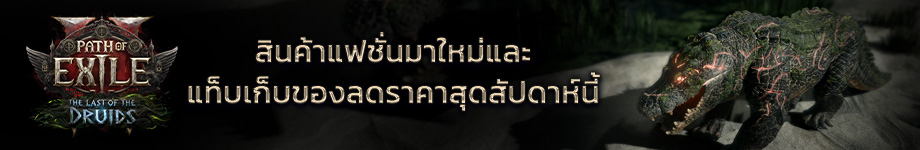 สินค้าแฟชั่น Path of Exile 2 มาใหม่สัปดาห์นี้เรามาพร้อมกับสินค้าแฟชั่นใหม่ๆ สำหรับ Path of Exile 2 งานนี้เรามีทั้งชุดเกราะเซ็ต เอฟเฟคสกิล และเอฟเฟคกลายร่าง! เชิญชมวิดีโอทางด้านล่างนี้แล้วเลือกซื้อกันได้ หรือเข้าร้านค้าภายในเกมด้วยการกด M ค่ะชุดเกราะเซ็ตคร็อกโคลิสก์สกินไม้พลองเต่าสกินกลายร่างหมี คร็อกโคลิสก์สกินกลายร่างไวเวิร์น คร็อกโคลิสก์สกินกลายร่างหมาป่า คร็อกโคลิสก์สกินกลายร่างไวเวิร์น ค้างคาวชุดเกราะเซ็ตโหรกาลเวลาวาล์เอฟเฟคพายุสลาตัน อะบิสซัลเอฟเฟคพายุสลาตัน Radiantแท็บเก็บของลดราคาสุดสัปดาห์นี้ช่วงสุดสัปดาห์นี้เราจัดโปรโมชั่นแท็บเก็บของแต่ละชนิด! ลองดูแท็บเก็บของที่ลดราคากันได้นะคะ โปรโมชั่นลดราคาแท็บเก็บของจะสิ้นสุดลงในวันจันทร์ที่ 22 ธันวาคม 2025 เวลา 19:00 น. (ตามเวลาในบัญชีของคุณ)ขอบคุณที่ให้การสนับสนุนค่ะ! |