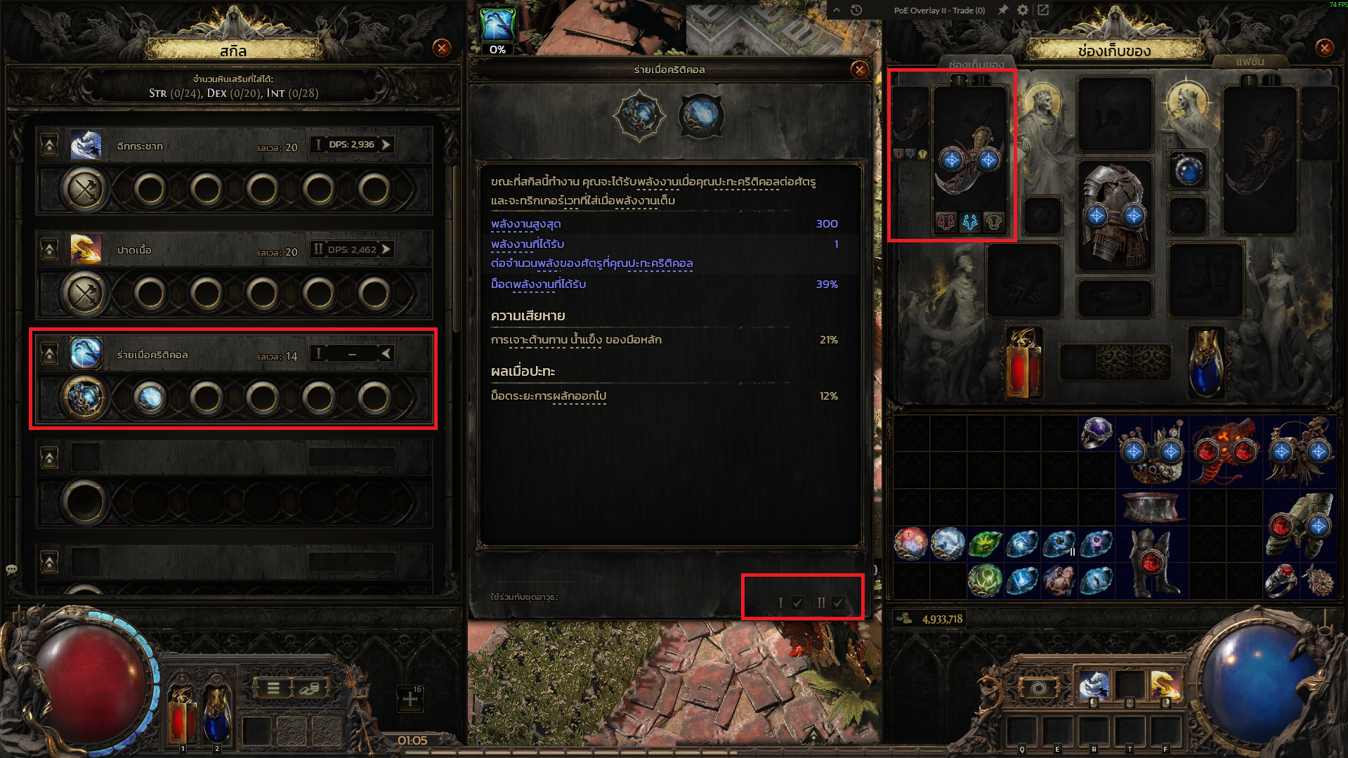 สกิลที่จะใช้มี 2 สกิล Cast on Critical Feral Invocation ทดลองโดยการเอาสกิลทุกอย่างออกหมด แล้วใช้สกิลที่ใช้ spirit สกิลเดียว เช่น กรณีที่ 1 อาวุธเซ็ตที่ 1 เปิดสกิล Cast on Critical ที่ใส่สกิล Comet ได้ แต่พอสลับอาวุธเป็นเซ็ต 2 จะเปิดสกิล Cast on Critical ไม่ได้ ลองปิดที่เซ็ต 1 ไว้ แต่ก็เปิดที่ เซ็ต 2 ไม่ได้อยู่ดี สลับอาวุธที่เปิดได้ในเซ็ต 1 ไปไว้เซ็ต 2 ก็เปิดไม่ได้อยู่ดี หรือ มือเปล่าทั้ง 2 เซ็ต ก็จะเปิดสกิลได้เฉพาะเซ็ต 1 เซ็ตที่ 2 จะเปิดไม่ได้ แม้จะลองปิดเซ็ตที่ 1 แล้ว (ลองเอาสกิลอื่นใส่แทน Comet แล้วก็ไม่ได้) สรุปคือ ไม่ว่าจะทำยังไง ก็เปิดได้ที่อาวุธเซ็ต 1 เท่านั้น และเปิดที่เซ็ต 2 ไม่ได้ ![]() ![]() --------------------------------------------------------------------------------------- ![]() ![]() กรณีที่ 2 สกิล Feral Invocation ใส่ Cross Slash อาวุธเป็น Talisman ตั้งเป็นอาวุธเซ็ต 1 และเซ็ต 2 จะเปิดที่อาวุธเซ็ต 1 ไม่ได้ แต่จะเปิดอาวุธเซ็ต 2 ได้ ทดลองเปลี่ยนสกิลที่ใส่ในหินเป็นสกิลอื่นก็เปิดไม่ได้ในอาวุธเซ็ต 1 อยู่ดี ทดลองใส่อาวุธ Talisman คนละอัน และสลับ ไปมาระหว่างเซ็ต 1 และเซ็ต 2 ก็จะเปิดสกิลในอาวุธเซ็ต 1 ไม่ได้อยู่ดี สรุปคือ ไม่ว่าจะทำยังไง ก็เปิดได้ที่อาวุธเซ็ต 2 เท่านั้น และเปิดที่เซ็ต 1 ไม่ได้ ![]() ![]() ทั้ง 2 กรณี อันนึงจะเปิดได้ที่เซ็ต 1 เท่านั้น อีกอันจะเปิดได้ที่เซ็ต 2 เท่านั้น ทดลองใส่อุปกรณ์เท่าที่จำเป็นแล้ว ทดลอง Reset skill Tree แล้วบางส่วน เพื่อตรวจสอบ ช่วยตรวจสอบให้หน่อยว่าเกิดจากอะไร ติดปัญหาจนไม่สามารถเล่นได้ ขุดครั้งสุดท้าย เมื่อ 9 ม.ค. 2026 13:33:37