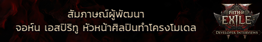 สำหรับการสัมภาษณ์ผู้พัฒนาตอนนี้ เราจับเข่าคุยกับจอห์น เอสปิริทู หัวหน้านักทำโครงโมเดลใน Grinding Gear Games เพื่อดูว่าโมเดลของเราเด้งและเคลื่อนไหวได้ยังไง เชิญชมวิดีโอกันได้ทางด้านล่างนี้ค่ะ!