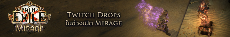 ฉลองการเปิด Path of Exile: Mirage ร่วมกับเราด้วยการติดตามชมสตรีมเมอร์ Twitch คนโปรดของคุณ เราจะเปิด Twitch Drops 1 สัปดาห์ตั้งแต่ 7 มีนาคม 2:00 น. เป็นต้นไปค่ะ!