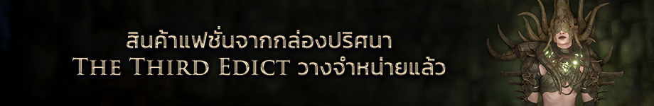 สินค้าแฟชั่นจากกล่องปริศนา The Third Edict วางจำหน่ายใน Path of Exile 1 และ 2 ค่ะ หากคุณอยากได้สินค้าแฟชั่นชิ้นไหนจากกล่องปริศนานี้เป็นพิเศษ คุณสามารถซื้อได้แล้วค่ะ!